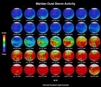 Začala v červnu 2001, kdy se oblast prachu začala objevovat v Hellas Basin na jižní polokouli. O deset dní později, 26. června 2001 začala bouře sílit a rozpínat se. Dosáhla i severní polokoule a zahalila polovinu planety. Začala